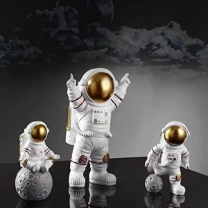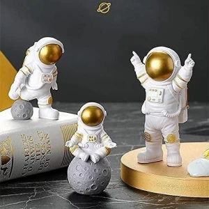 Product Name: Astronaut Spaceman Statue Ornament Home Office Desktop Figurine Decors Set of 3 – Golden