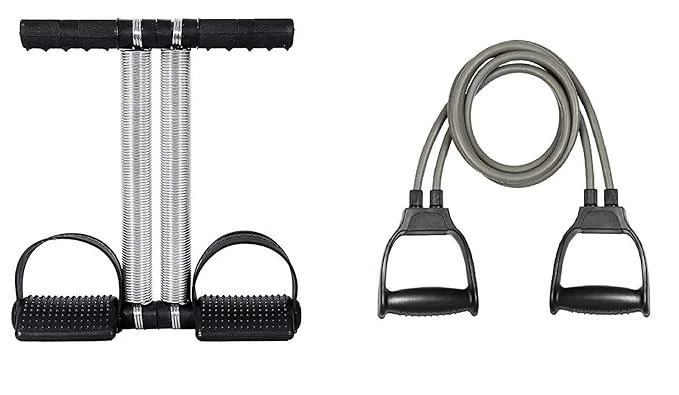 Product Name: Gym Combo Double Spring Tummy Trimmer With Heavy Resistance Band Toning Tube Ab Exerciser